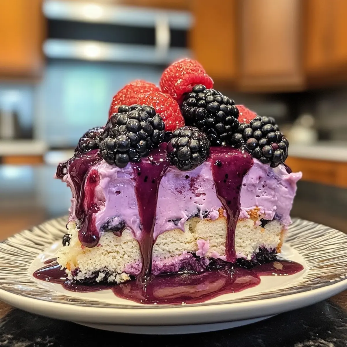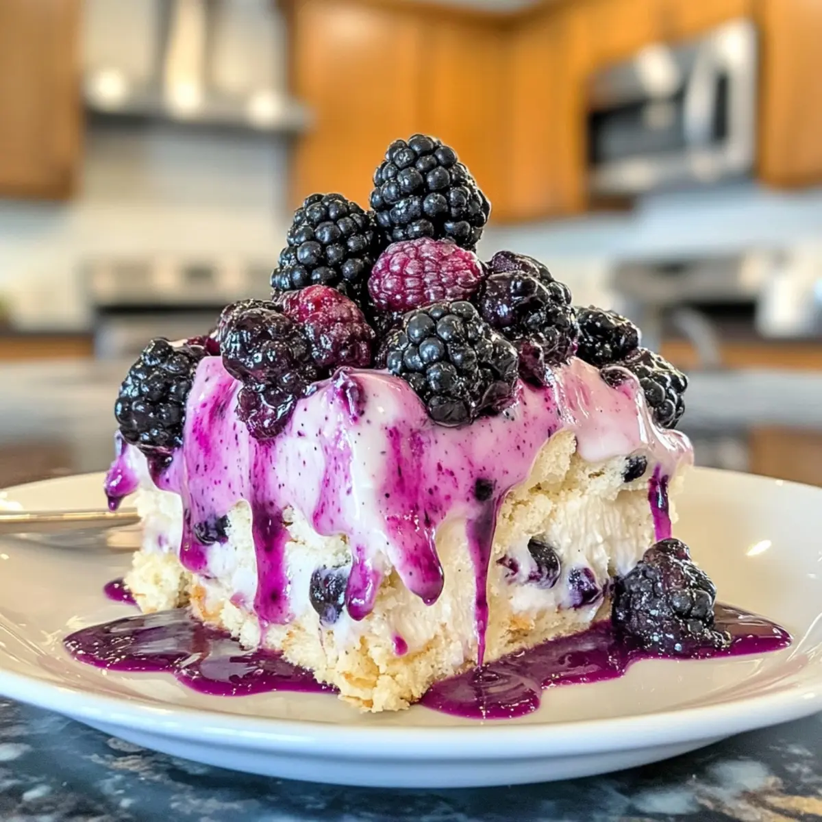 Eye-Catching Presentation: The vibrant blackberry color paired with whipped cream and berries creates an appealing, Instagram-worthy treat.