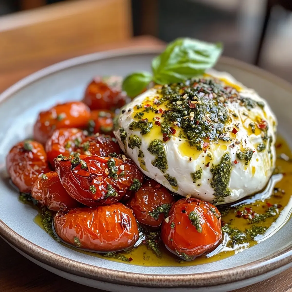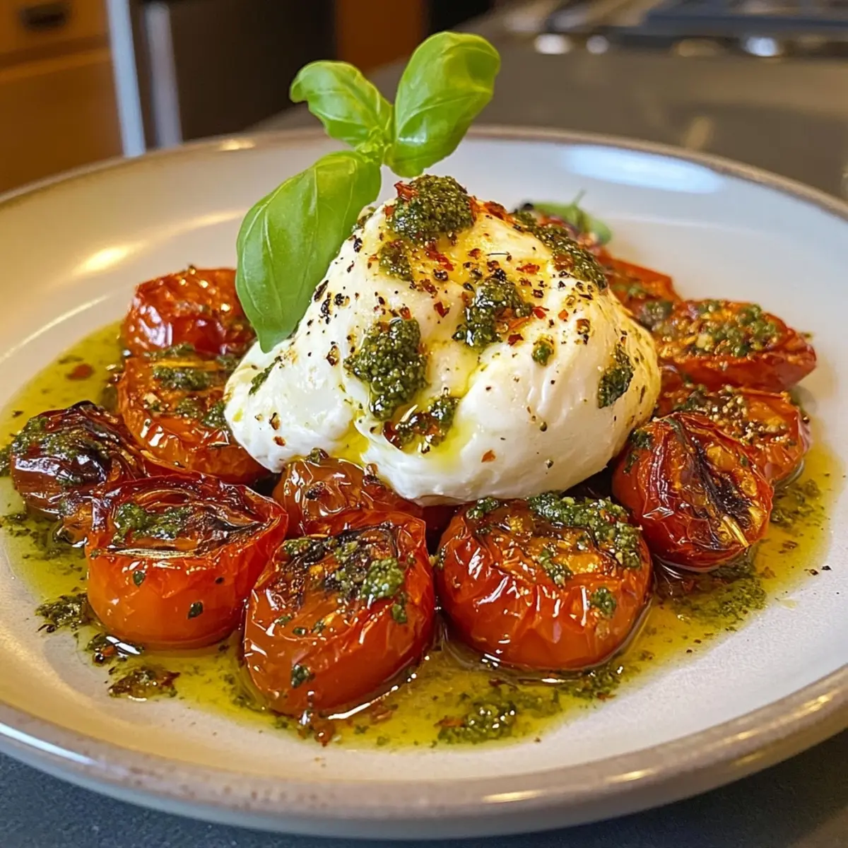 Unforgettable Flavor: The creamy burrata contrasts beautifully with the sweet roasted tomatoes, creating a flavor explosion in every bite.