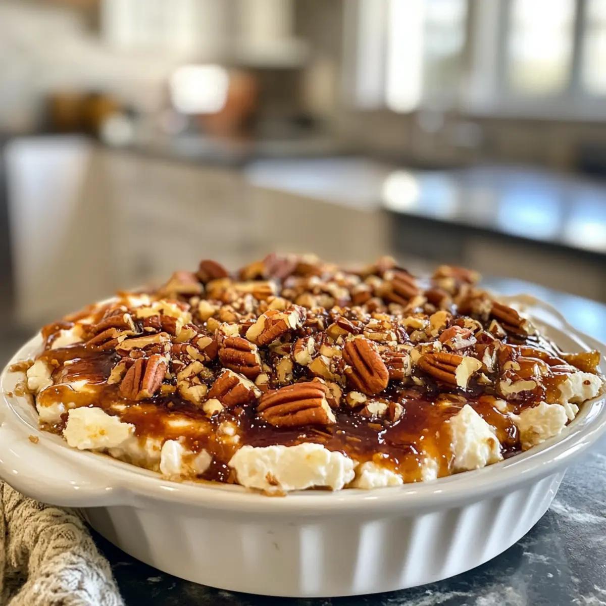 This Creamy Baked Feta Dip with Fig Jam and Pecans is an elegant, easy-to-make appetizer that combines tangy feta, sweet fig jam, and crunchy pecans.