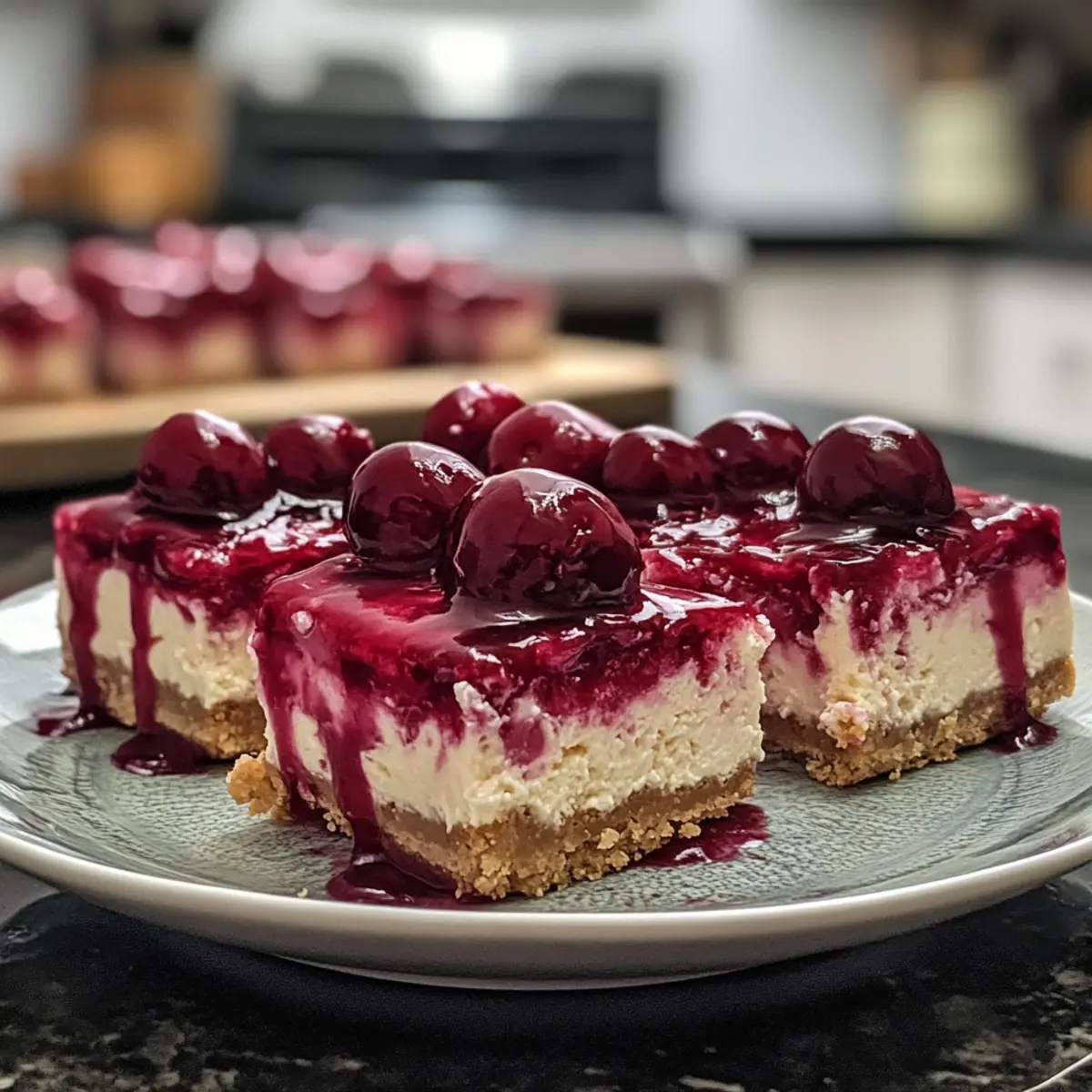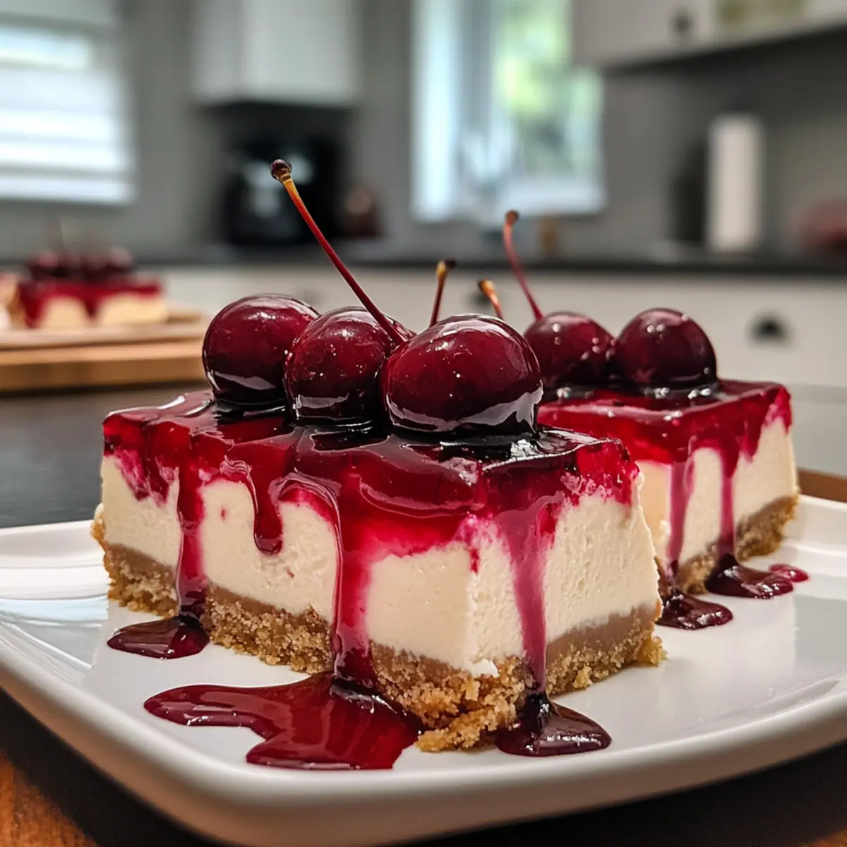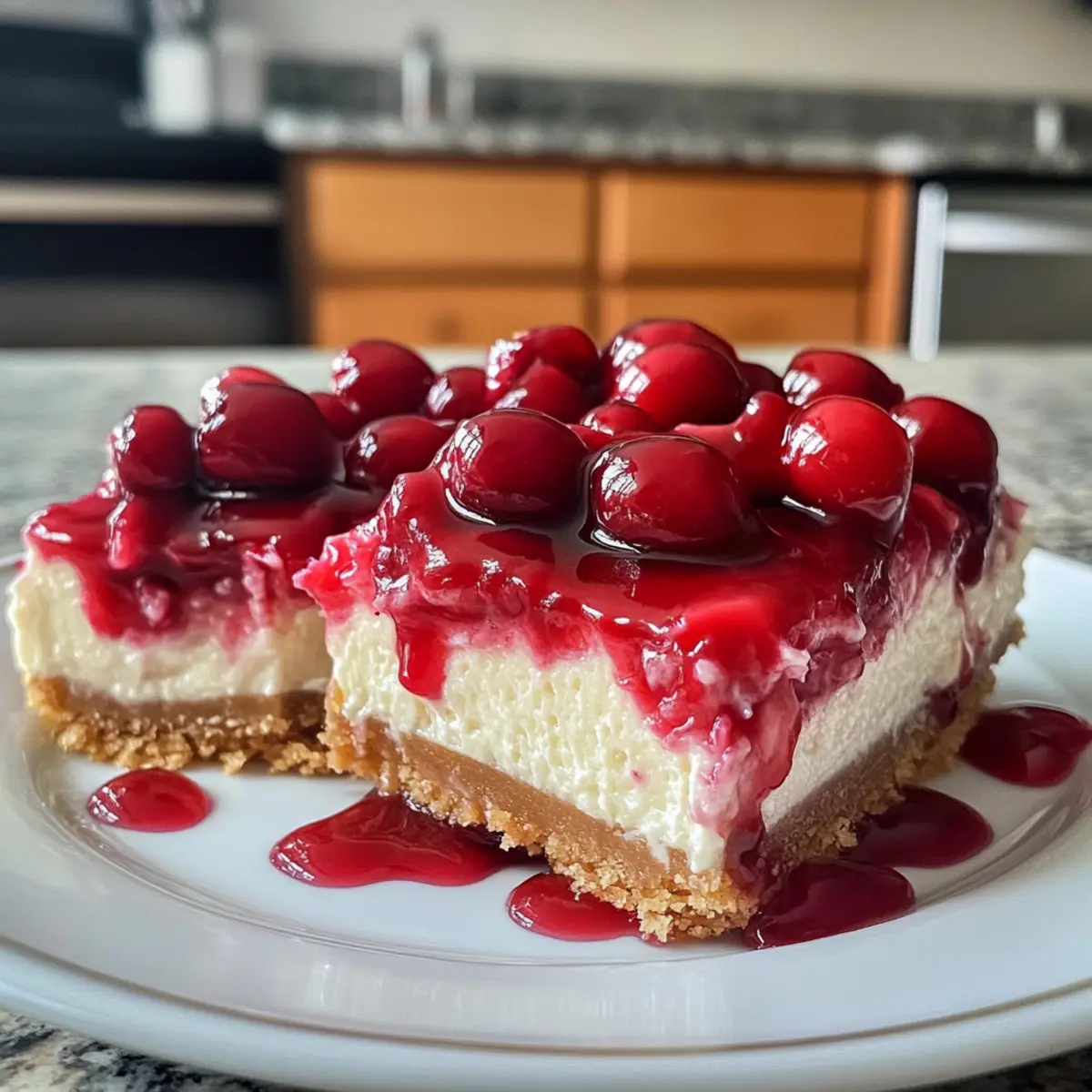 When the summer sun starts to warm up the air, there’s a certain magic that happens in the kitchen. The vibrant colors of fresh cherries inspire creativity, and suddenly, a craving for something sweet strikes. Enter my Creamy Cherry Cheesecake Bars—the perfect answer to that sweet tooth. These delightful squares combine a silky cheesecake filling with a luscious cherry topping, all sitting atop a buttery graham cracker crust that gives each bite just the right amount of crunch. They are incredibly easy to whip up, making them perfect for gatherings, picnics, or simply as a treat for yourself after a long day. The best part? You can customize them using either cherry pie filling or fresh, pitted cherries, allowing you to make this dessert truly your own. Trust me, once you cut into these bars and see the layers—a creamy dream topped with a burst of fruity goodness—you’ll find them hard to resist!