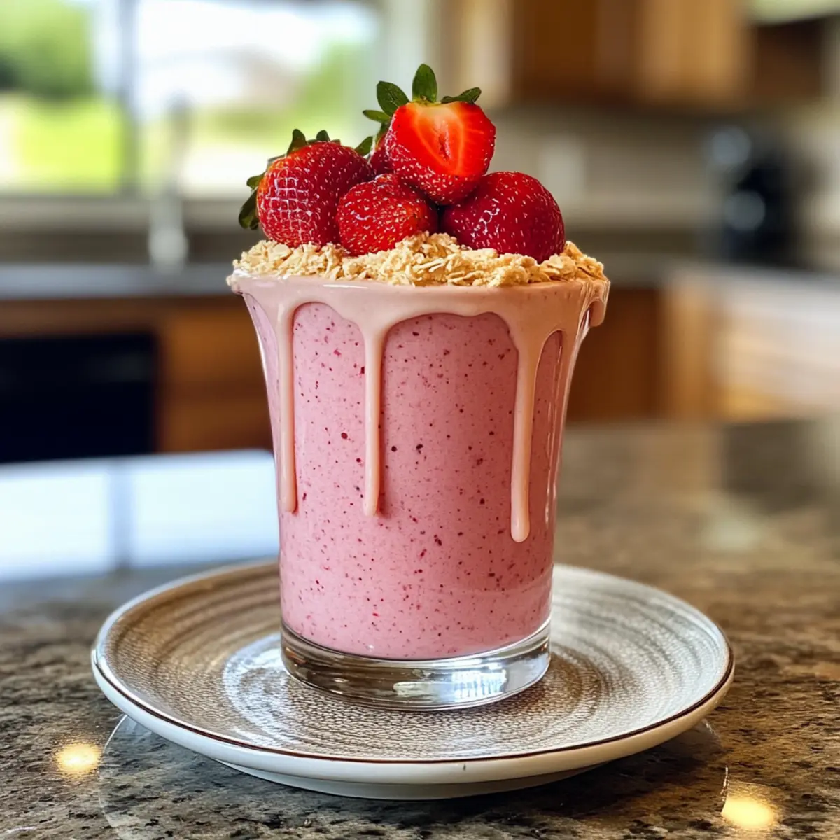 • Pour the beautiful pink smoothie into a glass, enjoy immediately, and garnish with fresh sliced strawberries or a dollop of whipped cream.