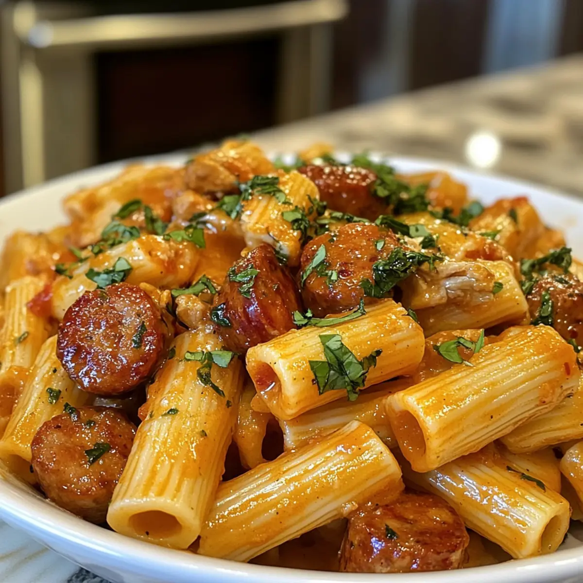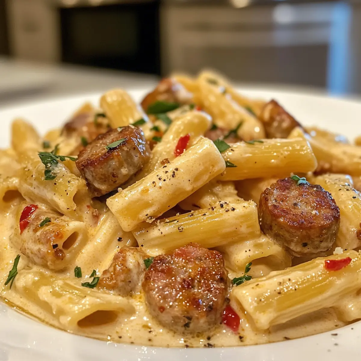 No worries at all! You can use any sausage you prefer, like chorizo or turkey sausage for a lighter option. The key is to choose a sausage that has a good flavor profile to complement the creamy sauce. Feel free to spice it up with Cajun seasoning if you’re using a milder sausage!