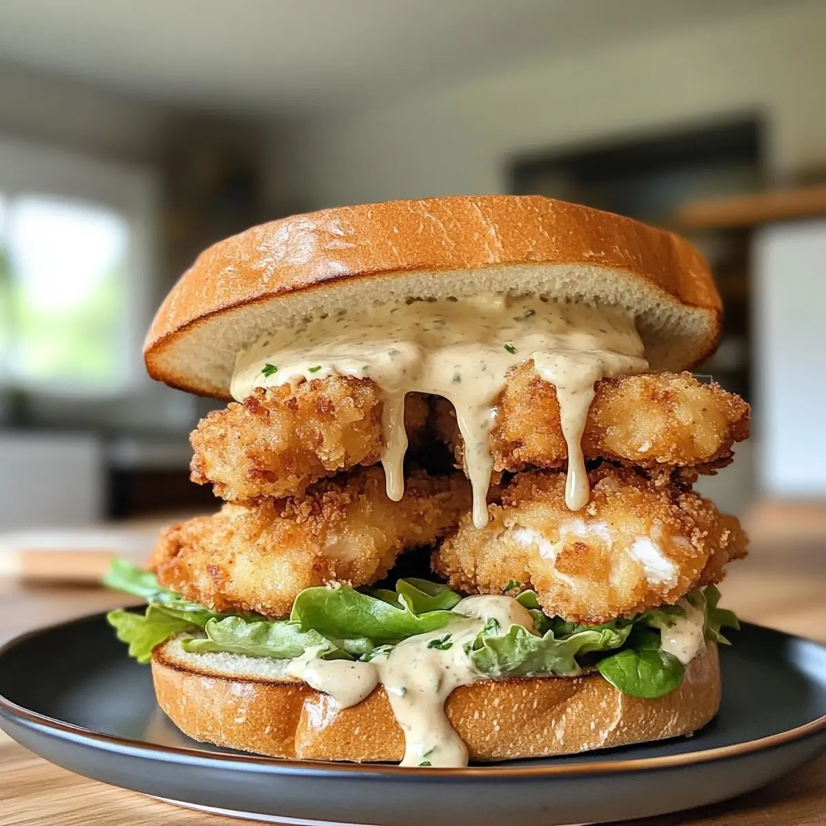 - Assemble the Sandwiches: Slice the French baguettes lengthwise. Spread a layer of the remaining Caesar dressing inside, then add the crispy chicken cutlets. Top with the dressed romaine lettuce, and close the sandwich. Serve immediately for that crunch!