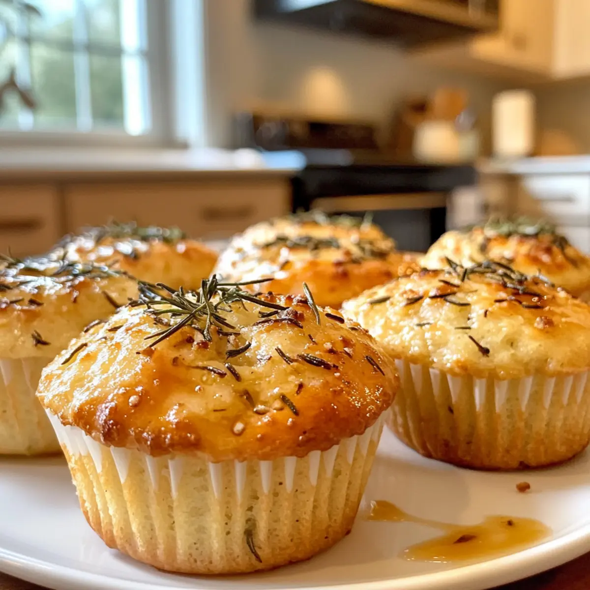 • Drizzle olive oil over the muffin tops, then sprinkle with extra rosemary, minced garlic, and sea salt.