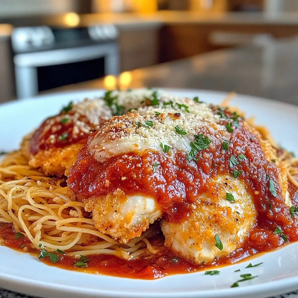 Whole Wheat Pasta: Serve the chicken over al dente whole wheat pasta, creating a wholesome base that pairs beautifully with the marinara.