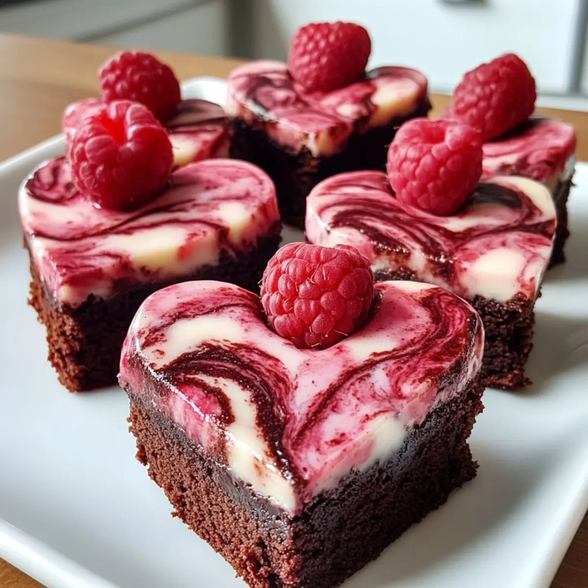 Get your ingredients ready and let’s turn these heart-shaped brownies into a creamy, raspberry-swirl delight!