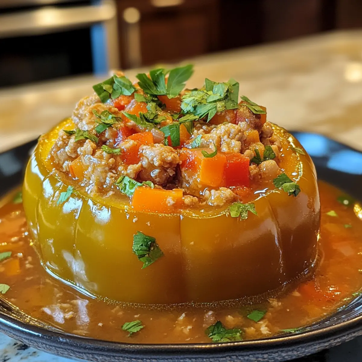 Irresistibly Hearty Stuffed Bell Pepper Soup with Ground Turkey Recipe