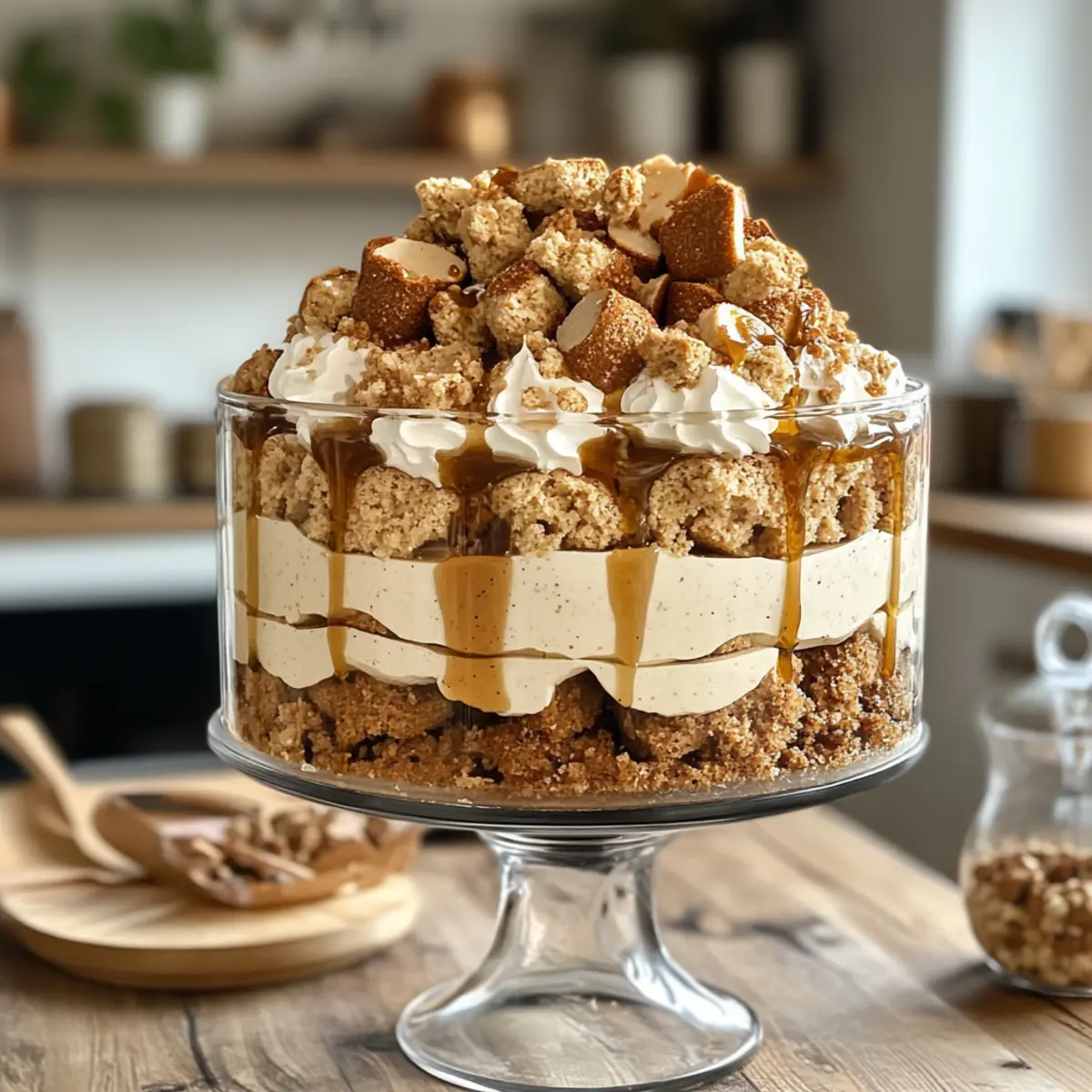 10. Chill and Serve: Garnish with crushed gingersnap cookies and sprinkle with ground cinnamon or nutmeg. Refrigerate your trifle for 2+ hours before serving to let the flavors meld beautifully.