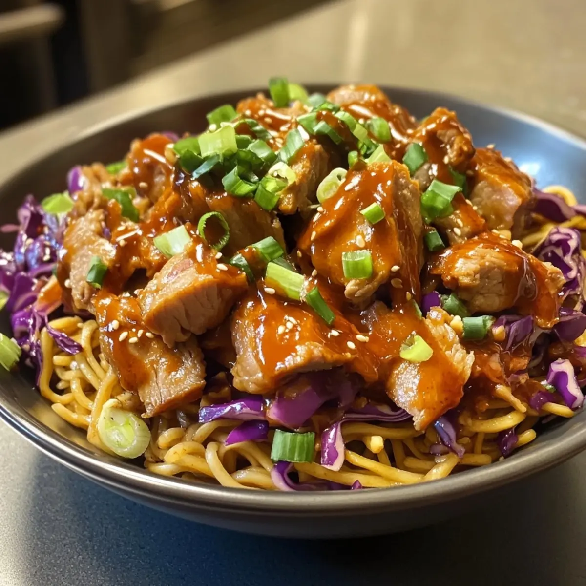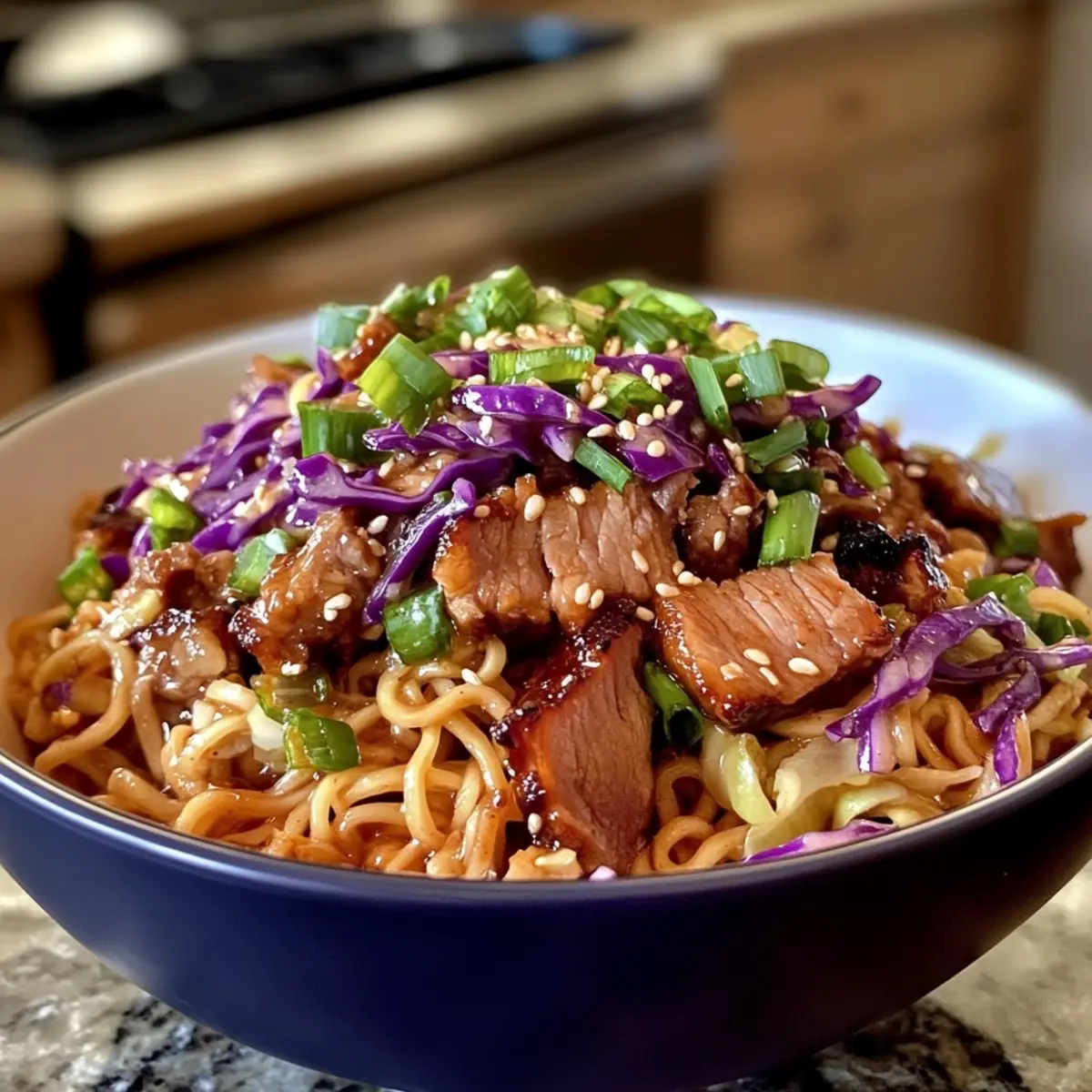 Keyword Cabbage Slaw, Easy, Noodle bowl, Pork, Quick, savory