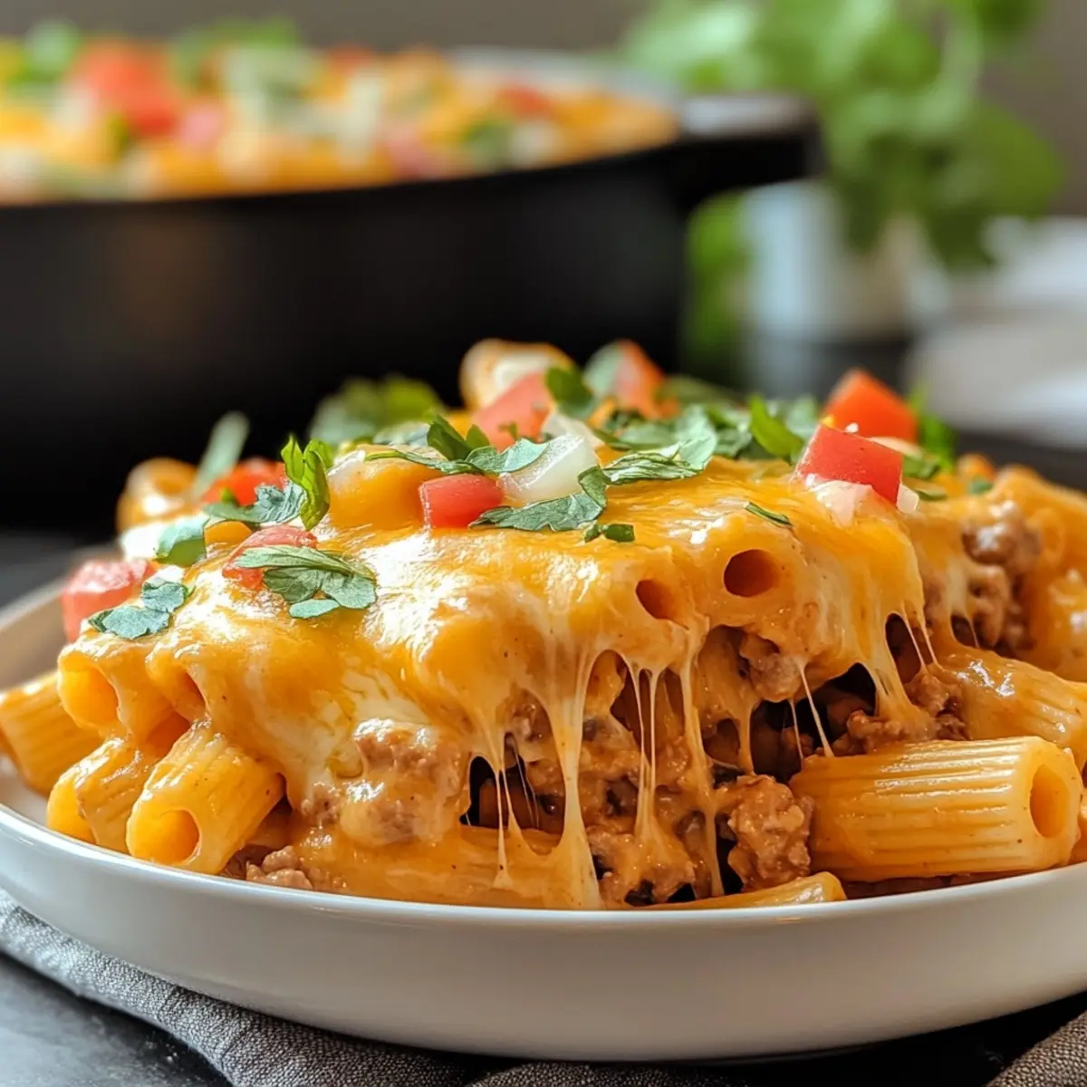This One Pot Cheesy Taco Pasta combines the flavors of tacos in a creamy, delicious dish, perfect for busy nights.