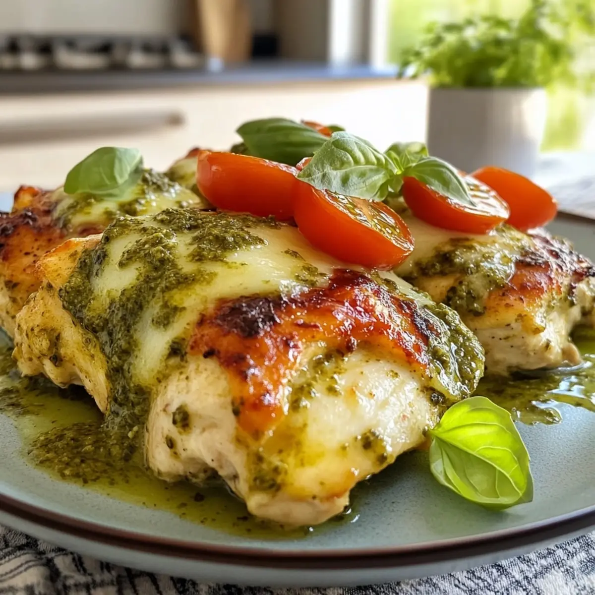 Stuffed Chicken: For an extra layer of flavor, stuff the chicken breasts with spinach and ricotta before adding the pesto and cheese. This surprises every bite with creamy goodness!