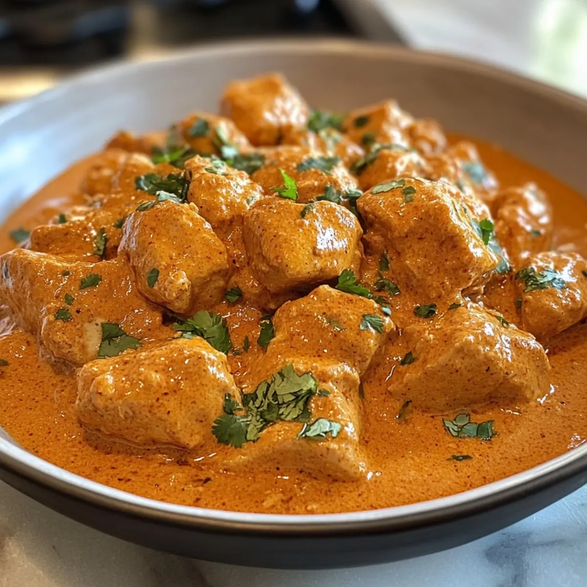 7. Serve: Serve your Quick & Easy Homemade Butter Chicken hot, paired with warm naan and steamed rice for the ultimate comfort food experience.