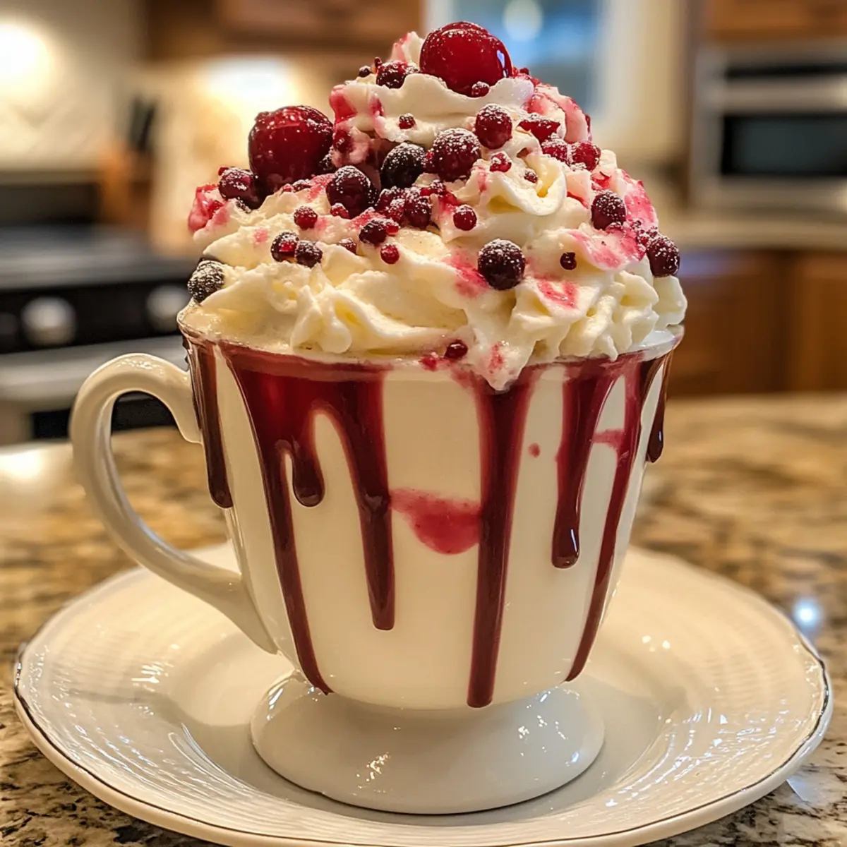 Caramel Drizzle: Top your hot chocolate with a drizzle of caramel sauce for an irresistible sweet twist that complements the cranberries beautifully.