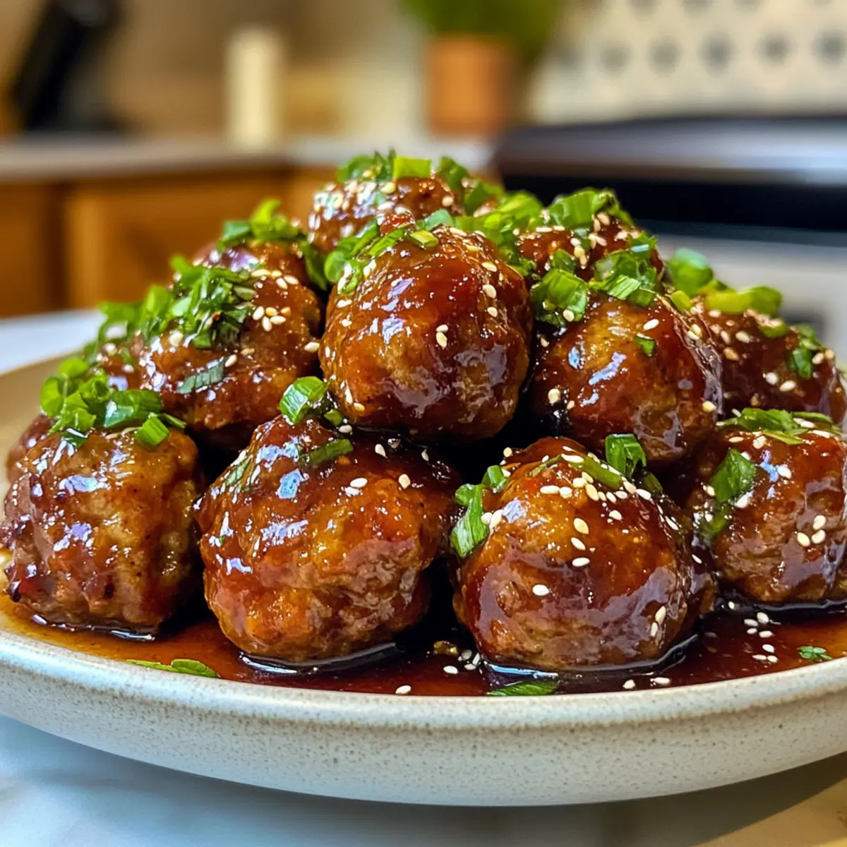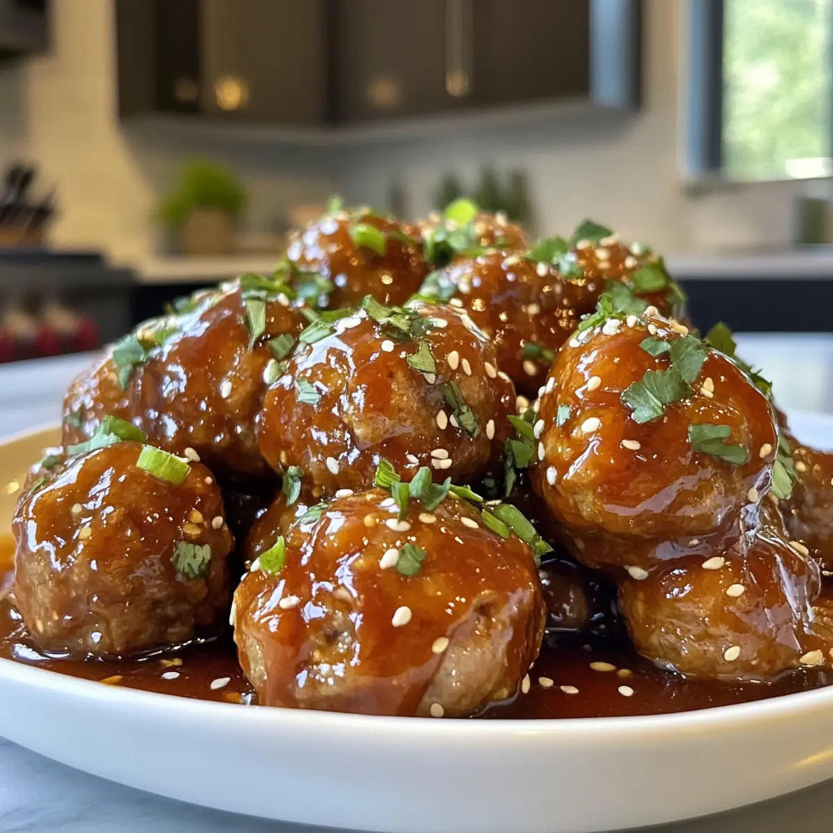 Serve: Garnish your savory Korean BBQ meatballs with chopped green onions and sesame seeds for an extra pop of flavor and color!
