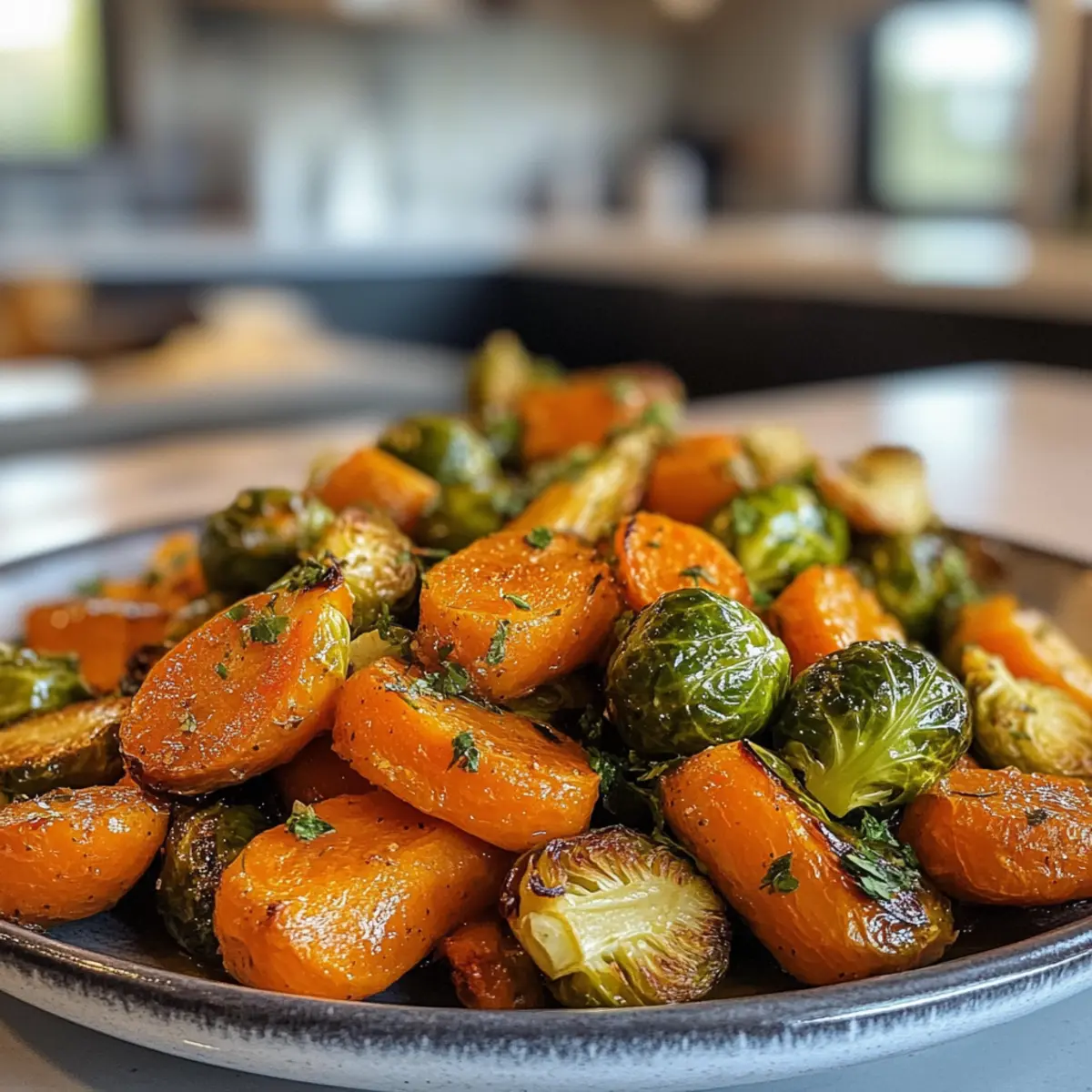 Broccoli Swap: Replace Brussels sprouts with broccoli for a delightful texture and slightly different flavor profile. Broccoli adds a lovely crunch that pairs perfectly with the sweetness of the carrots.