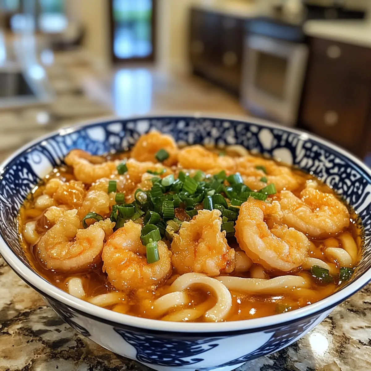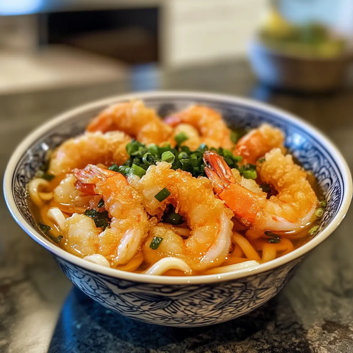 Delicious Crunch: The golden-brown shrimp tempura adds a delightful crunch that contrasts beautifully with the soft udon noodles.