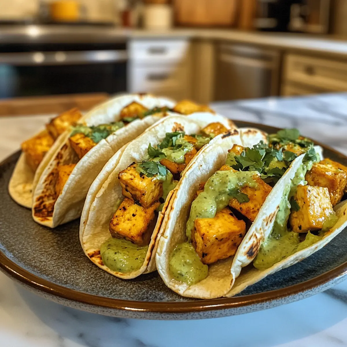 Reheating: For best results, reheat in the oven at 350°F for about 10 minutes to retain the crispiness of the tofu while warming the tacos throughout.