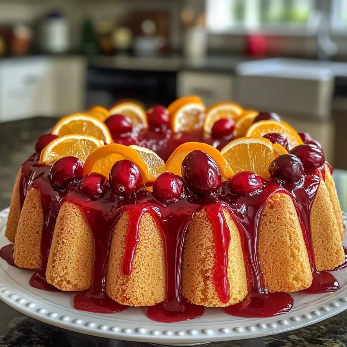 Dazzle your guests with this vibrant Cranberry Citrus Holiday Crown, combining tropical flavors and a festive appearance, perfect for holiday celebrations.